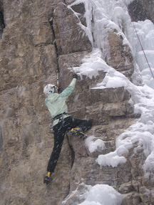 Eva, Mugs, and I signed up for a women’s mixed climbing clinic, taught by Carolyn Parker and Zoe Hart. It was a bit melancholy, because just the year before, several of us had taken a women’s ice clinic from Sue Nott and Karen McNeill, who died in Alaska a few months later. Carolyn and Zoe kept up Karen’s tradition of sparkles and never apologizing for slips.